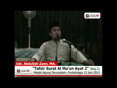 Video ceramah agama Islam berikut ini merupakan rekaman pengajian rutin Tafsir Al-Quran yang diselenggarakan di Masjid Agung Darussalam Purbalingga, Jawa Tengah setiap Rabu malam ba’da Maghrib. Kajian ini disampaikan oleh Ustadz Abdullah Zaen, M.A. (Pimpinan Pondok Pesantren Tunas Ilmu Purbalingga). Pada kesempatan kali ini, Ustadz Abdullah Zaen memberikan materi tentang muqaddimah dari surat Al-Ma’un. Selamat menyaksikan dan semoga bermanfaat bagi seluruh kaum muslimin.